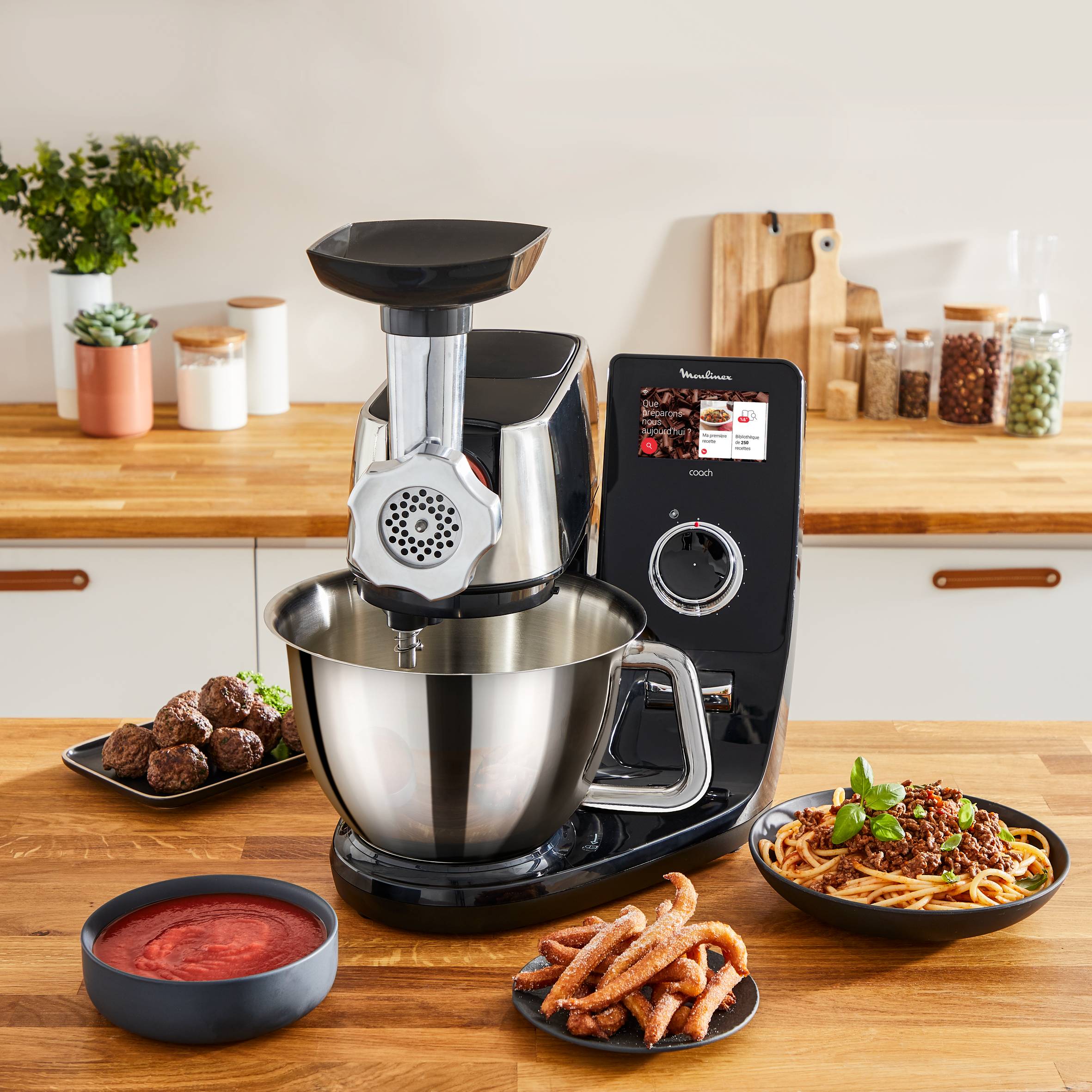 Pensez au-delà de la pâtisserie avec l'ensemble d'accessoires 5-en-1 Coach Meat & Pasta Box de Moulinex qui transforme votre robot pâtissier Coach pour explorer de nouvelles possibilités. Préparez des pâtes fraîches, de la viande hachée et des kebbés maison, mais aussi des coulis onctueux et des biscuits parfaitement façonnés. Le hachoir viande est équipé de lames Powelix pour des résultats parfaits en un rien de temps, avec la finesse et la consistance idéales, tandis que l'application dédiée vous aidera à trouver l'inspiration avec ses recettes et ses conseils.