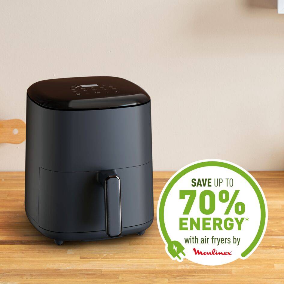 Une friteuse à air indispensable pour des plats sains et savoureux prêts en quelques minutes avec peu ou pas d'huile Une capacité généreuse de 5 L qui permet de servir jusqu'à 6 personnes, suffisante pour les familles les plus affamées et idéale pour recevoir des invités Économisez jusqu'à 70 % d'énergie avec des résultats 46 % plus rapides*, pour passer moins de temps en cuisine et plus de temps à faire ce que vous aimez Un appareil facile à utiliser équipé d'un panneau de commande digital intuitif pour une cuisson sans effort 10 programmes de cuisson sans surveillance : Frites, Poulet, Steak, Poisson, Desserts, Pizza, Nuggets, Légumes, Crevettes, Bacon Panier de cuisson antiadhésif et compatible lave-vaisselle pour un nettoyage sans effort et une cuisson sans stress Engagement de réparabilité 15 ans pour contribuer à la protection de l'environnement et à la réduction des déchets Scannez le QR code sur votre smartphone ou votre tablette pour accéder au livre de recettes Easy Fry, pour des recettes faciles qui plairont au plus grand nombre