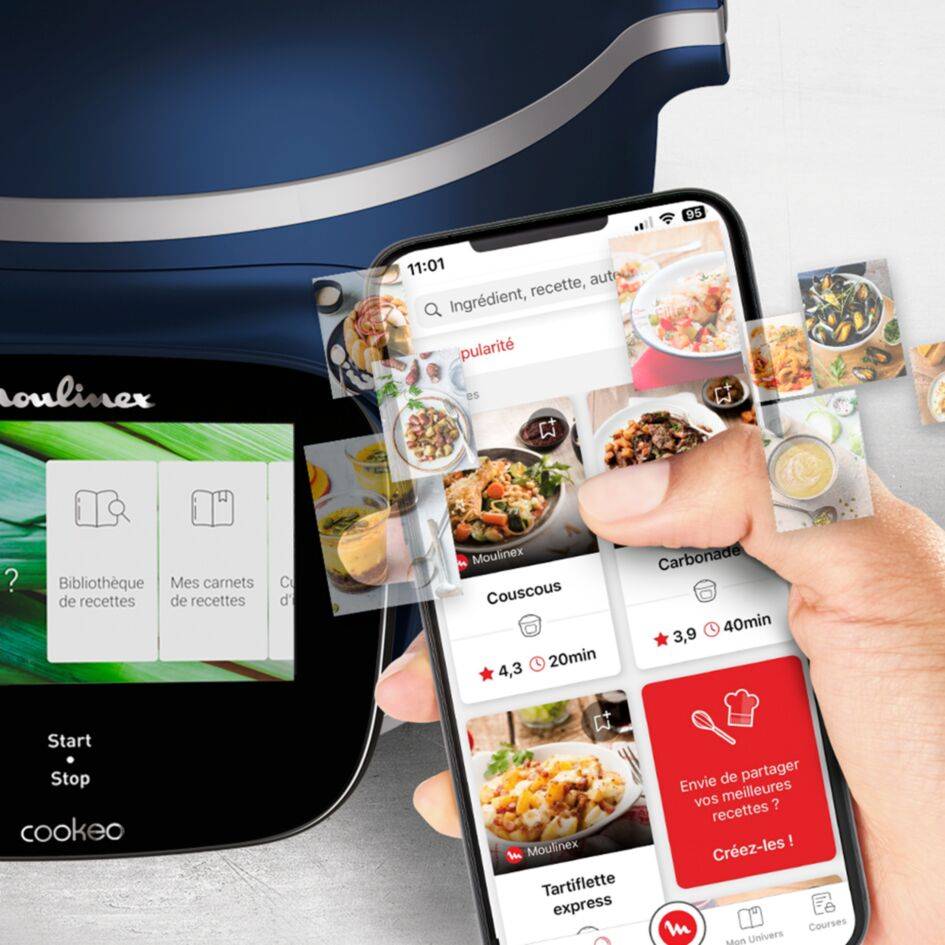 Téléchargez l'application Moulinex pour cuisiner encore plus facilement ! Filtrez les recettes en fonction de vos goûts, du temps de préparation et bien plus L'application garde même en mémoire vos recettes préférées et vous propose des suggestions sur mesure ! Vous pouvez également modifier et partager votre liste de courses, rechercher des recettes en fonction des ingrédients que vous avez à disposition, et suivre les instructions étape par étape pour obtenir des résultats parfaits Rejoignez la communauté Moulinex et partagez vos avis et astuces, publiez vos propres recettes et découvrez de nouveaux thèmes chaque mois !
