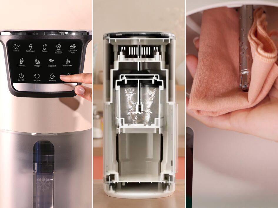 Machine à glaces offrant 10 programmes pour une infinité de desserts glacés Programme dédié pour les garnitures, afin de personnaliser vos créations : pépites de chocolat, biscuits, amandes, etc. Programme de rinçage automatique et accès à chaque pièce en contact avec les aliments pour un nettoyage facile Technologie 1-Step Perfector pour des résultats parfaits en une seule fois Livre de recettes numérique avec 50 idées pour vous lancer, y compris des recettes sans lactose, vegan, sans sucre, salées et sucrées, etc. Préparez jusqu'à 1,4 L de glace avec les 3 bols en Tritan inclus, pour une dégustation en solo ou avec toute la famille