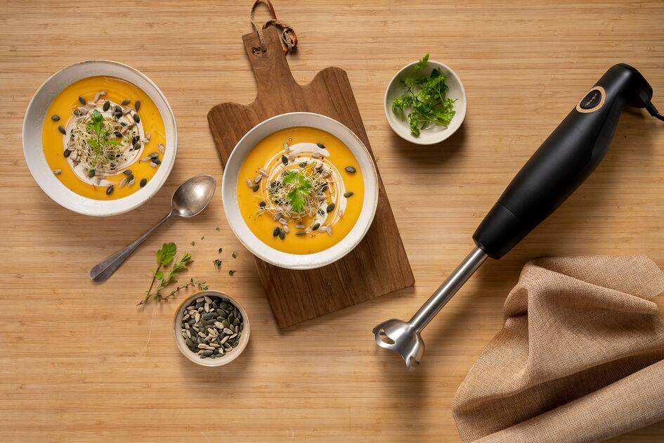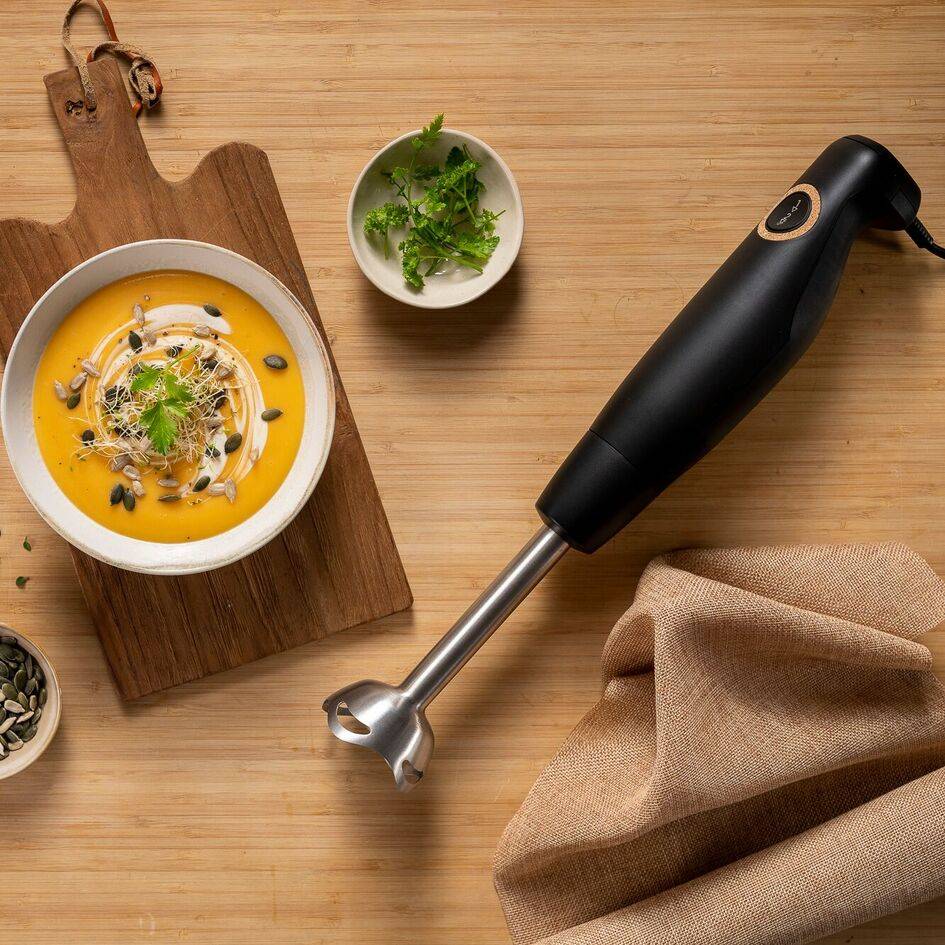 Dégustez de délicieuses préparations maison, telles que des soupes, des purées, des sauces, du pesto, et bien plus grâce au mixeur à pied Eco Respect ! Ce mixeur manuel au design écologique assure des performances parfaites au quotidien, avec une variété de fonctionnalités pratiques pour un mixeur à pied efficace jour après jour. Les lames Powelix exclusives assurent un haut niveau de durabilité et des résultats 30 % plus rapides*. La gâchette à double vitesse très intuitive et facile à utiliser convient à n'importe quelle texture ou consistance, avec un puissant moteur de 600 W pour un mixage optimal en un rien de temps. Découvrez le mixeur à pied parfait, avec un pied anti-éclaboussure permettant de garder votre cuisine impeccable, des éléments amovibles compatibles lave-vaisselle, ainsi qu'un récipient de 800 ml pour libérer entièrement votre créativité culinaire. Réaliser à la perfection de nouvelles recettes n'a jamais été aussi facile !