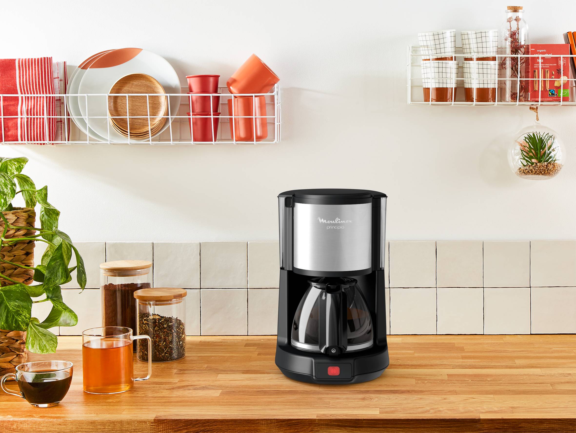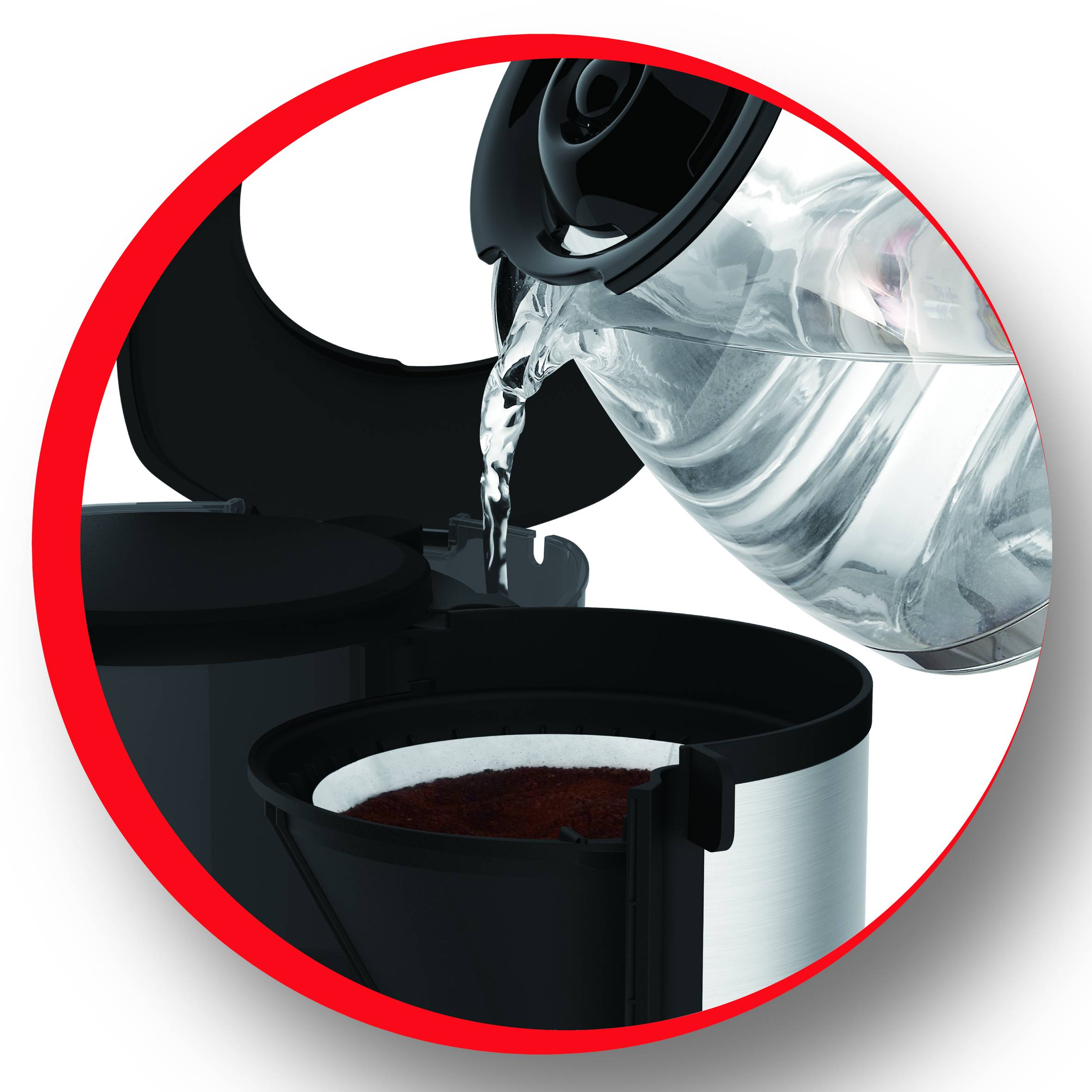 Une cafetière pratique et facile à utiliser à l’esthétique moderne et élégante Grande capacité de 1,25 l pour 10 à 15 tasses de café fraîchement moulu Une préparation et un nettoyage sans effort, grâce au porte-filtre pivotant et amovible Système anti-goutte pour servir le café pendant que la cafetière est en fonctionnement Un remplissage facile grâce à la fenêtre de niveau d’eau transparente Fonction de maintien au chaud de 30 minutes avec arrêt automatique pour une tranquillité d'esprit totale