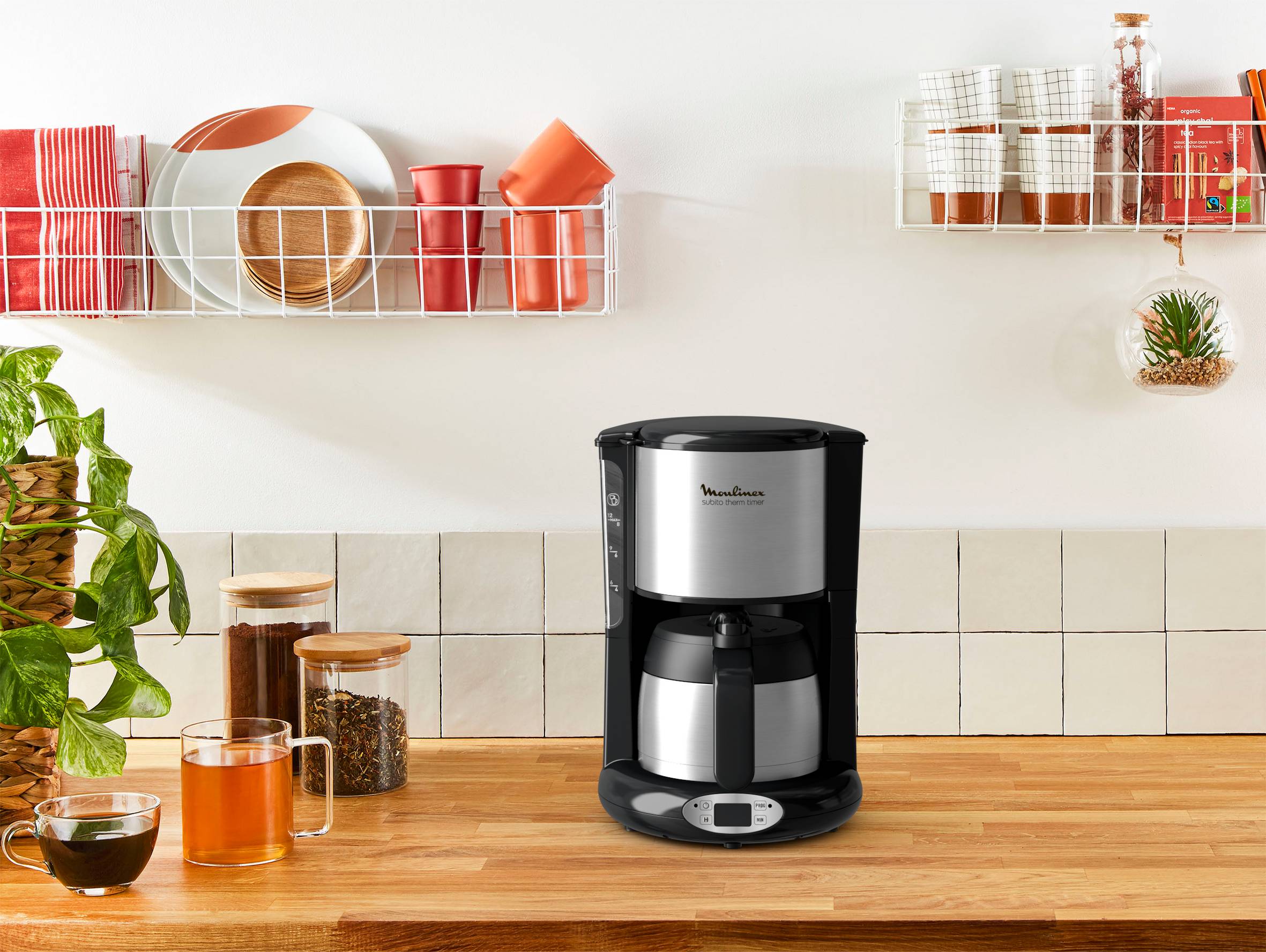 Rien ne vaut la saveur et l’arôme du café fraîchement préparé au réveil. C’est désormais plus facile que jamais grâce à Moulinex ! La machine à café filtre Subito offre une programmation 24 heures pour simplifier vos matinées. Cette cafetière isotherme a été conçue pour vous offrir un réveil parfait, avec sa verseuse isotherme de 0,9 l qui conserve 12 tasses de café à la température idéale pendant 4 heures, le système anti-goutte pour faciliter le service, l’arrêt automatique et plus encore.