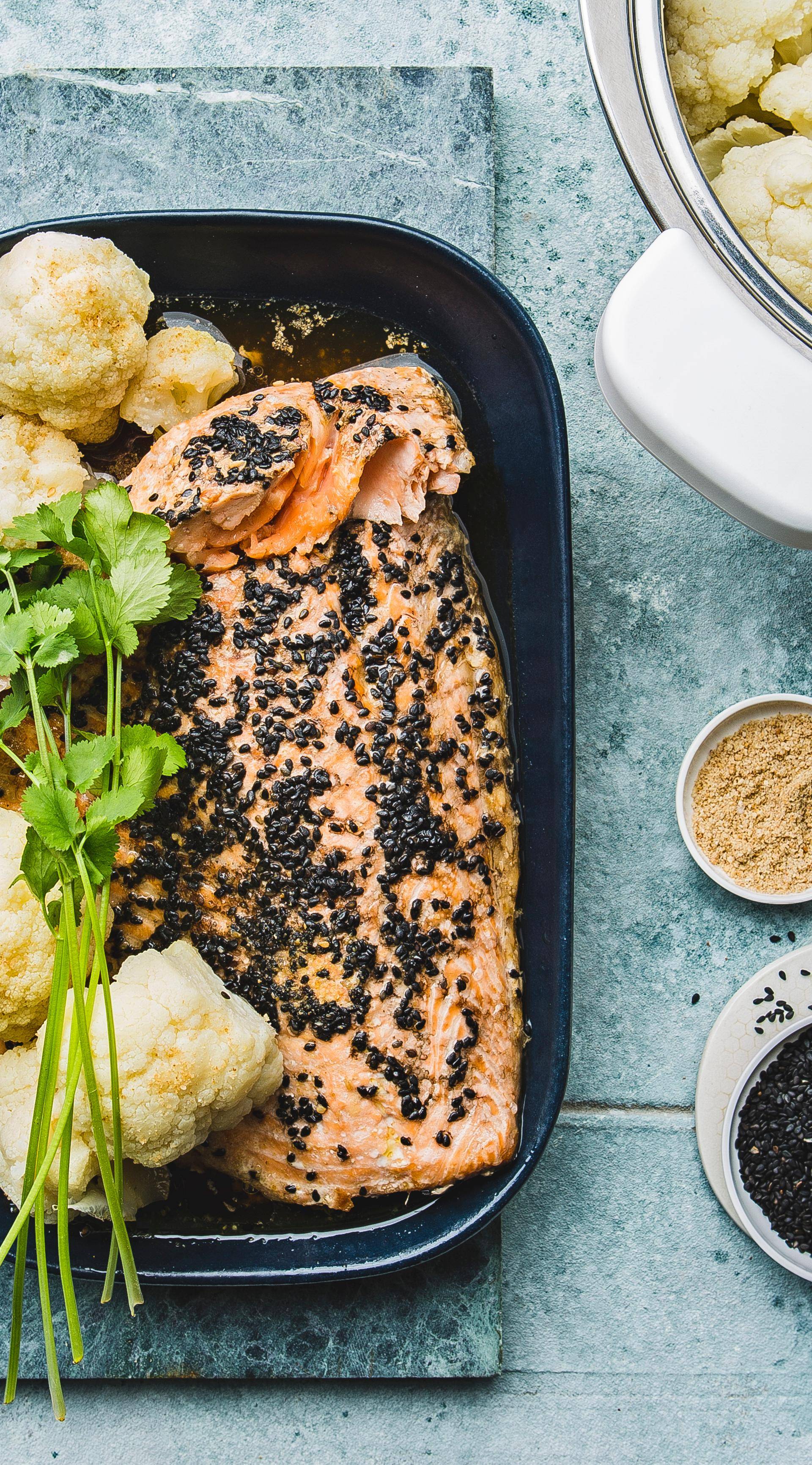 Saumon au tamari et sésame, chou-fleur au gomasio