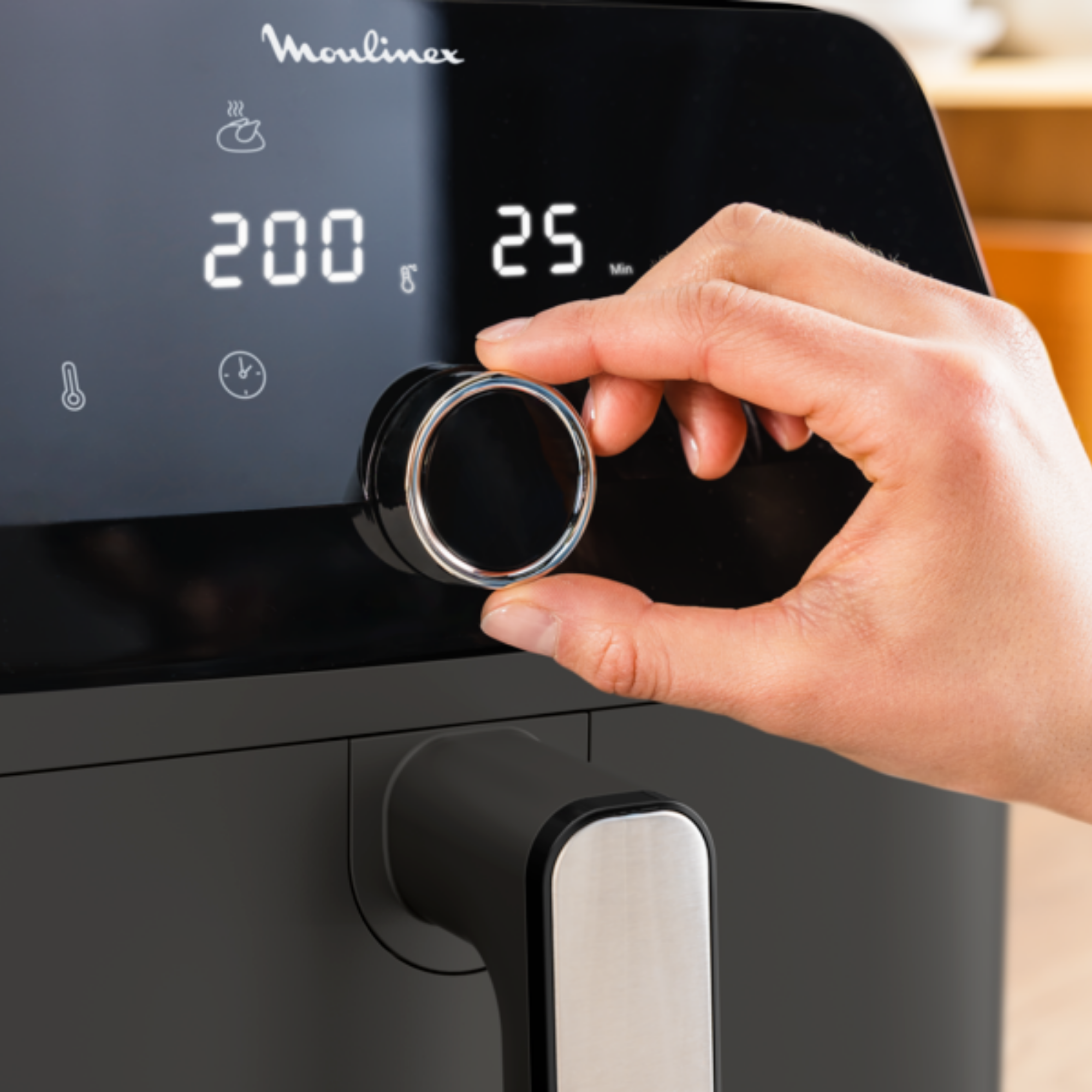 Air fryer met extra grote capaciteit van 7.5 L voor maximaal 8 personen, voor heerlijke maaltijden voor het hele gezin Air fryer met een ultra grote capaciteit in een verrassend compact en ruimtebesparend formaat 8 voorgeprogrammeerde programma's en nauwkeurige temperatuur- en tijdsinstellingen (80 °C-200 °C, tot 60 min), voor perfecte resultaten bij elk recept Easy Fry Mega Air fryer verbruikt tot 65% minder energie en bakt tot 37% sneller (tests uitgevoerd in 2024 op diepvriesfriet). Van knapperige pizza tot zalm om van te watertanden, evenwichtige en heerlijke dagelijkse maaltijden zijn kinderspel Vaatwasserbestendig frituurmandje met antiaanbaklaag, voor moeiteloos schoonmaken en bakken zonder stress Gratis app voor receptideeën op basis van je smaak, tijd of ingrediënten - plus nog veel meer 15 jaar herstelgarantie, om het milieu te beschermen en afval te verminderen