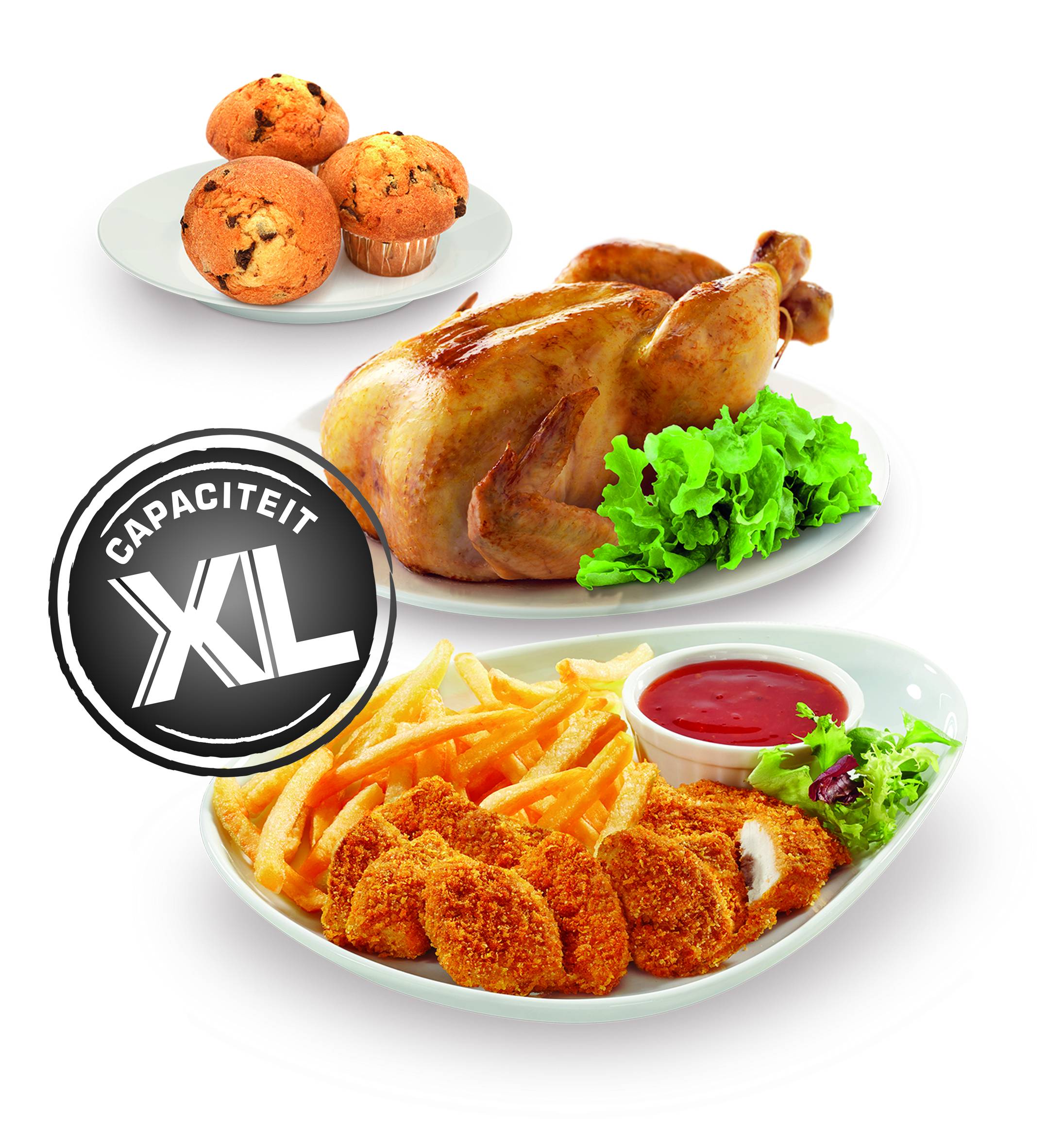 Geniet van knapperig en heerlijk gefrituurd voedsel met weinig of geen olie*. Met de XL capaciteit kunt u tot 6 porties (4,2L) heerlijk voedsel bereiden voor vrienden en familie. Easy Fry kan niet alleen frituren, hij kan ook al je favoriete recepten grillen, roosteren en bakken in een mum van tijd!