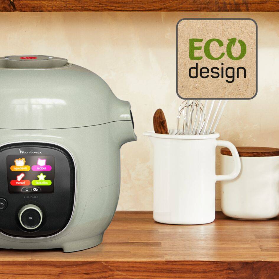 Ontmoet je nieuwe persoonlijke keukenassistent: de Cookeo Mini EcoDesign, de slimme multicooker die ideaal is voor twee personen! Deze ecologisch ontworpen versie is speciaal vervaardigd met zoveel mogelijk gerecyclede materialen: ten minste 30% van het totale gewicht, inclusief 32% van het roestvrij staal en 37% van de kunststoffen uit gerecycleerde materialen. Ontdek een unieke selectie van energiezuinige ingebouwde recepten en gebruik snelkoken om tot 80% energie te besparen.