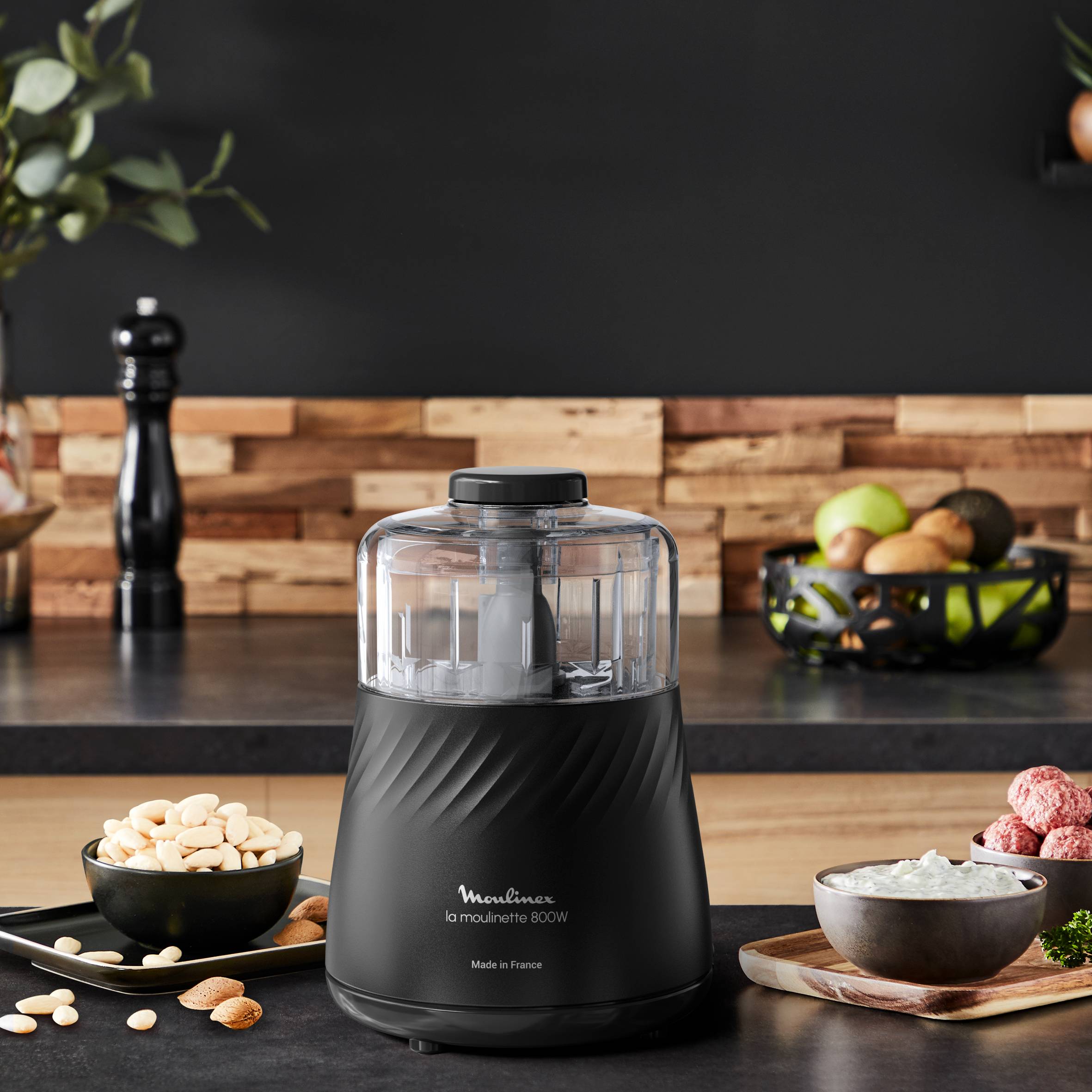 Een ecologisch ontworpen hakmolen gemaakt van 46%* gerecycleerd plastic voor een lagere milieu-impact** Krachtige 800 W motor met dezelfde prestaties* als onze 1000 W hakmolen voor moeiteloos hakken en optimale prestaties die tot 10% energie besparen*** Veelzijdige 4-in-1 hakmolen die ingrediënten snijdt, hakt, maalt en mengt zoals uien, knoflook, fijne kruiden en meer Een eenvoudig ontwerp met een drukactivatiesysteem en een royale inhoud van 500 ml voor moeiteloos hakken Vaatwasserbestendige afneembare onderdelen voor eenvoudig schoonmaken en perfect dagelijks gemak Een uitzonderlijke hakmolen met Powelix-messentechnologie voor 30% snellere**** hakresultaten Vervaardigd in onze fabriek in Lourdes, Frankrijk volgens hoge kwaliteitsnormen en met het beste aan vakmanschap 15 jaar herstelgarantie om het milieu te beschermen en afval te verminderen
