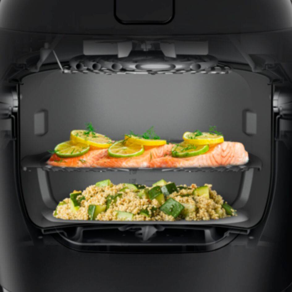 Een volledige maaltijd die klaar is in een mum van tijd dankzij de meerlaagse kookfunctie!