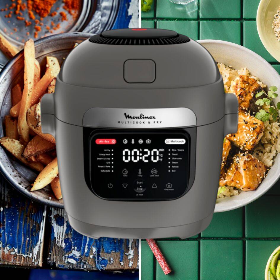 Maak kennis met de Multicook & Fry van Moulinex, een veelzijdig kooktoestel om eenvoudige maaltijden tot in de perfectie klaar te maken. Deze combinatie van een air fryer en een multicooker geeft je keuken een upgrade met een volledig pakket: 12 automatische programma's om gemakkelijk te koken, geavanceerde air fryer-technologie voor malse, sappige en knapperige resultaten, een meerlaagse kookplaat om in één keer een volledige maaltijd te bereiden en nog veel meer!