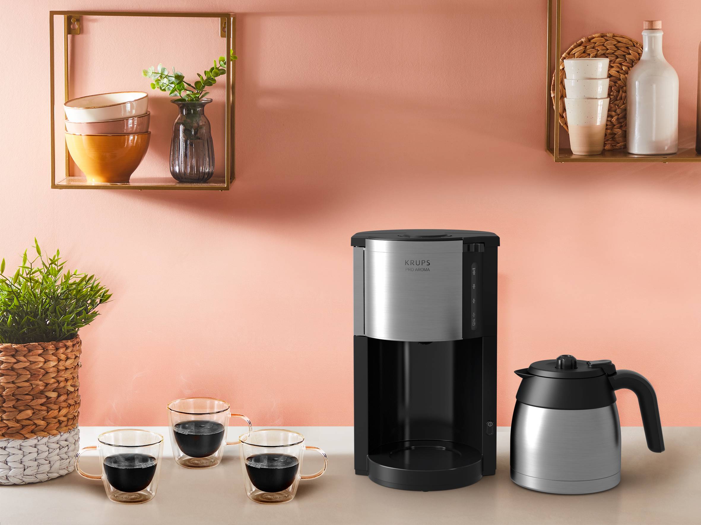 Moulinex toont je de nieuwe producten van Krups, een merk van Groupe SEB! Ontdek Pro Aroma KM305D10 Koffiezetter met filter - 15 tassen - Thermos en koop het direct op {{website}}