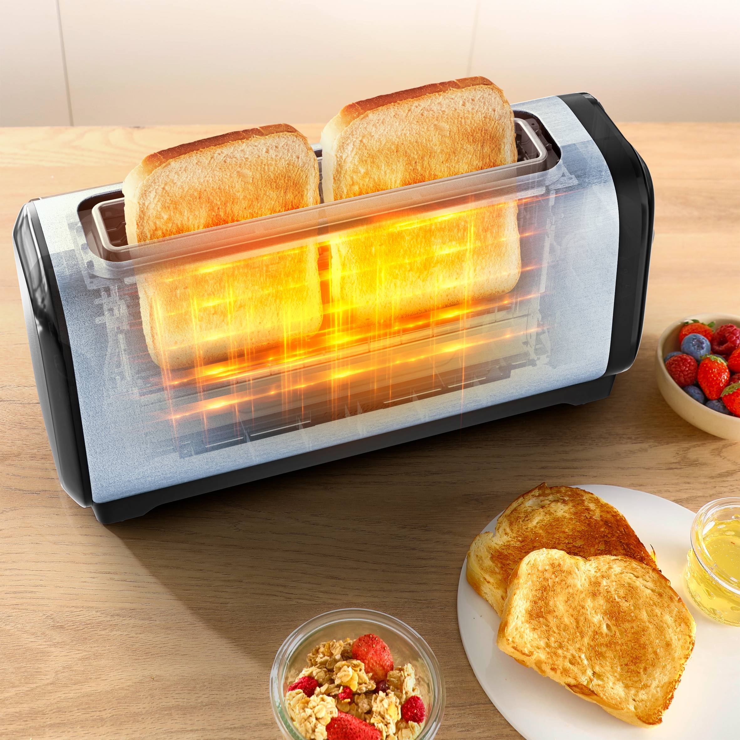 - Subito, broodrooster met lange sleuven, sneller roosteren, energiebesparend, zwart en inox