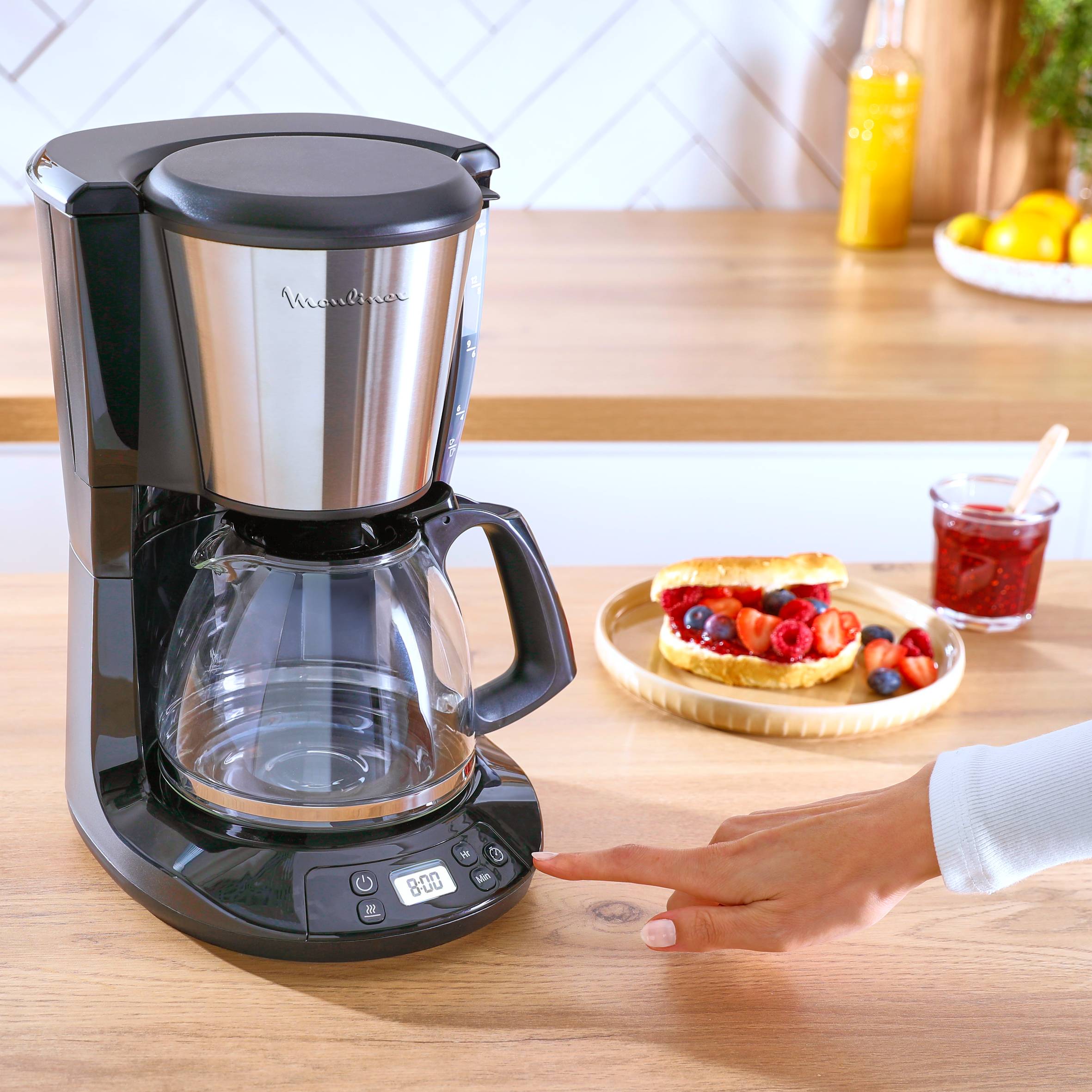 Zorg dat elke minuut telt met Subito. Begin het koffiezetten zonder warmhoudfunctie en bespaar tot 19% energie* dankzij de optionele warmhoudfunctie. Met de warmhoudfunctie blijft je koffie tot 30 minuten warm. Dit moderne filterkoffiezetapparaat is eenvoudig te vullen met gemalen koffie en water, en gemakkelijk schoon te maken. Dankzij het druppelstopsysteem kun je je koffie op elk moment inschenken, zelfs tijdens het koffiezetten! *vs ingeschakelde warmhoudfunctie